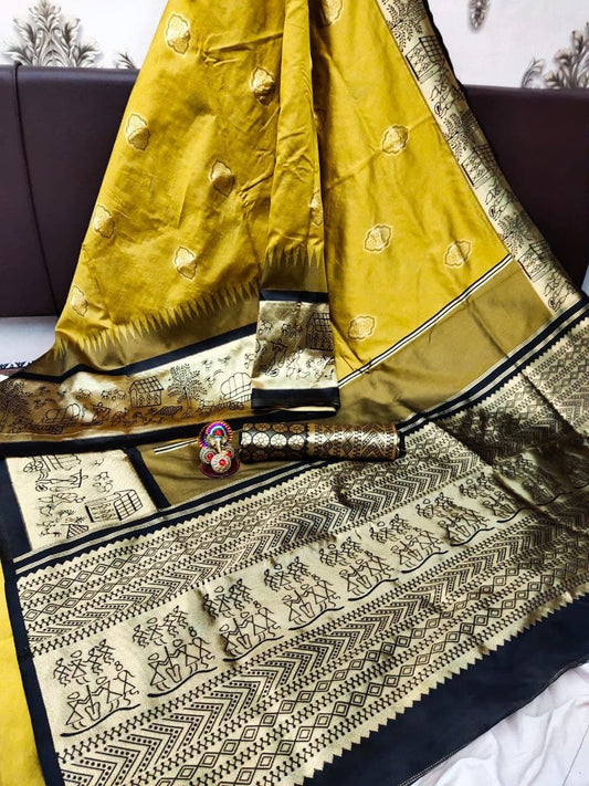 Yellow Green Knajivaram Silk Saree with Designer Blouse