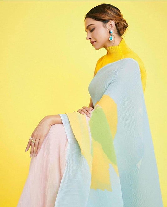 Pure Georgette Yellow and Green Saree for women with Unstitched Blouse