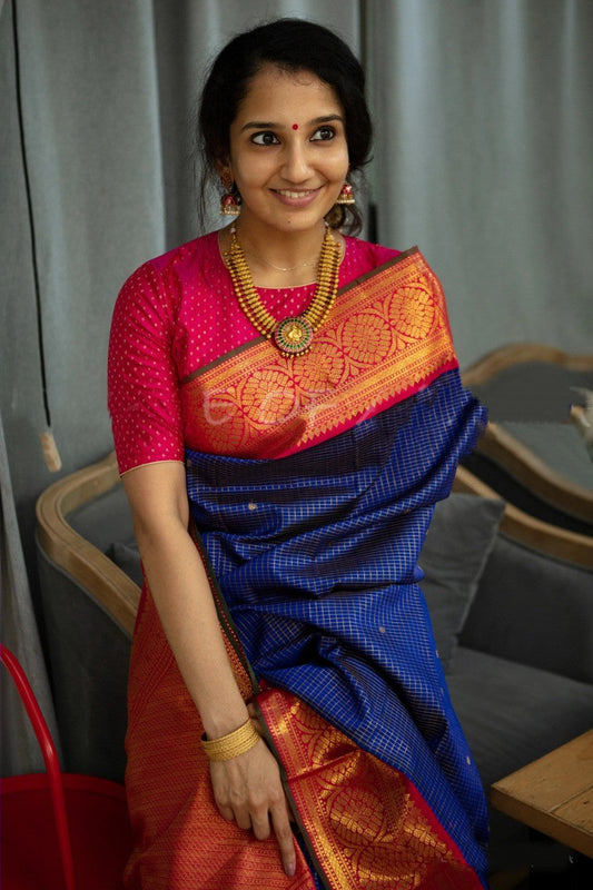 Blue Pure Silk Kanjeevaram Saree for Women fab New