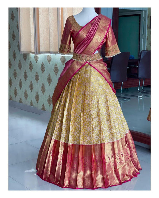 Golden Silk Zari Lehenga With Blouse And Silk Duppta