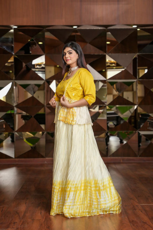 Elegant Yellow White Designer Lehenga Choli With Jacket