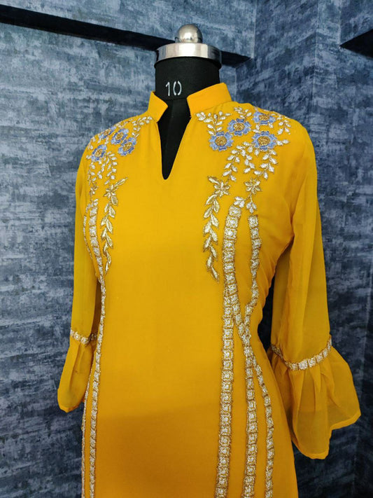 Designer Yellow Color Georgette Top with Dupatta