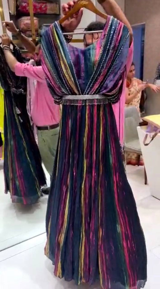Designer Party Wear Naby Blue Gown With Heavy Khatli Work
