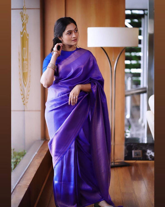 Dark Purple Wedding Wear Saree in Banarasi Silk