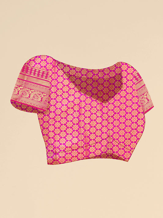 Radiant Pink Banarasi Silk Saree with Royal Blue Zari Woven Border