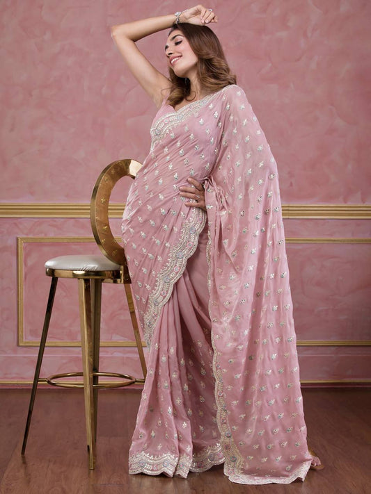 Magento Handcrafted Silk Bridal Saree with Fancy Dori And Blouse